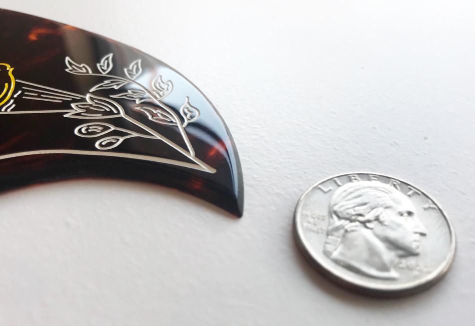 This is a new custom-made replacement pickguard for a 1960s-era Gibson Hummingbird flat-top guitar. It is a very accurate reproduction of the legendary Hummingbird design that is engraved into .085" extra thick 100% real celluloid tortoise shell material and hand-painted in the classic 2-color motif of off-white and yellow. Unlike Gibson pickguards, this is not a printed pattern or decal on the surface and will not wear off. Hand-buffed glossy finish. 60 degree beveled edges. Also comes with 3M adhesive transfer tape backing, so all you have to do is peel and stick it on your guitar. There are many after-market Hummingbird pickguards available but they are either a printed pattern or a decal. You will not find an engraved Hummingbird pickguard like this anywhere.